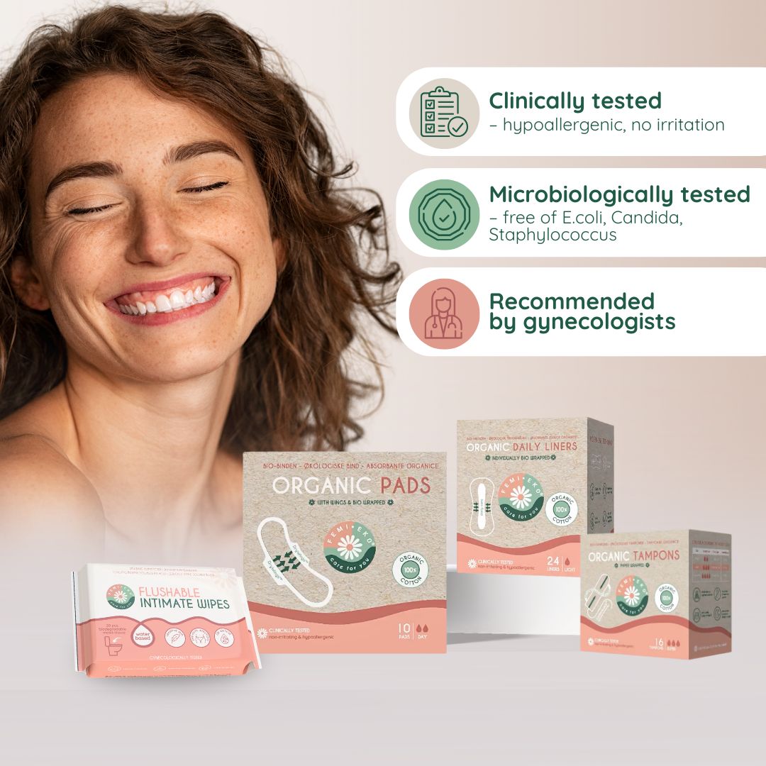 – er individuelt indpakket, hygiejniske og i biologisk nedbrydelige materialerProdukterne er udviklet til at give sikker beskyttelse og naturlig komfort, uden at gå på kompromis med sundhed eller bæredygtighed.