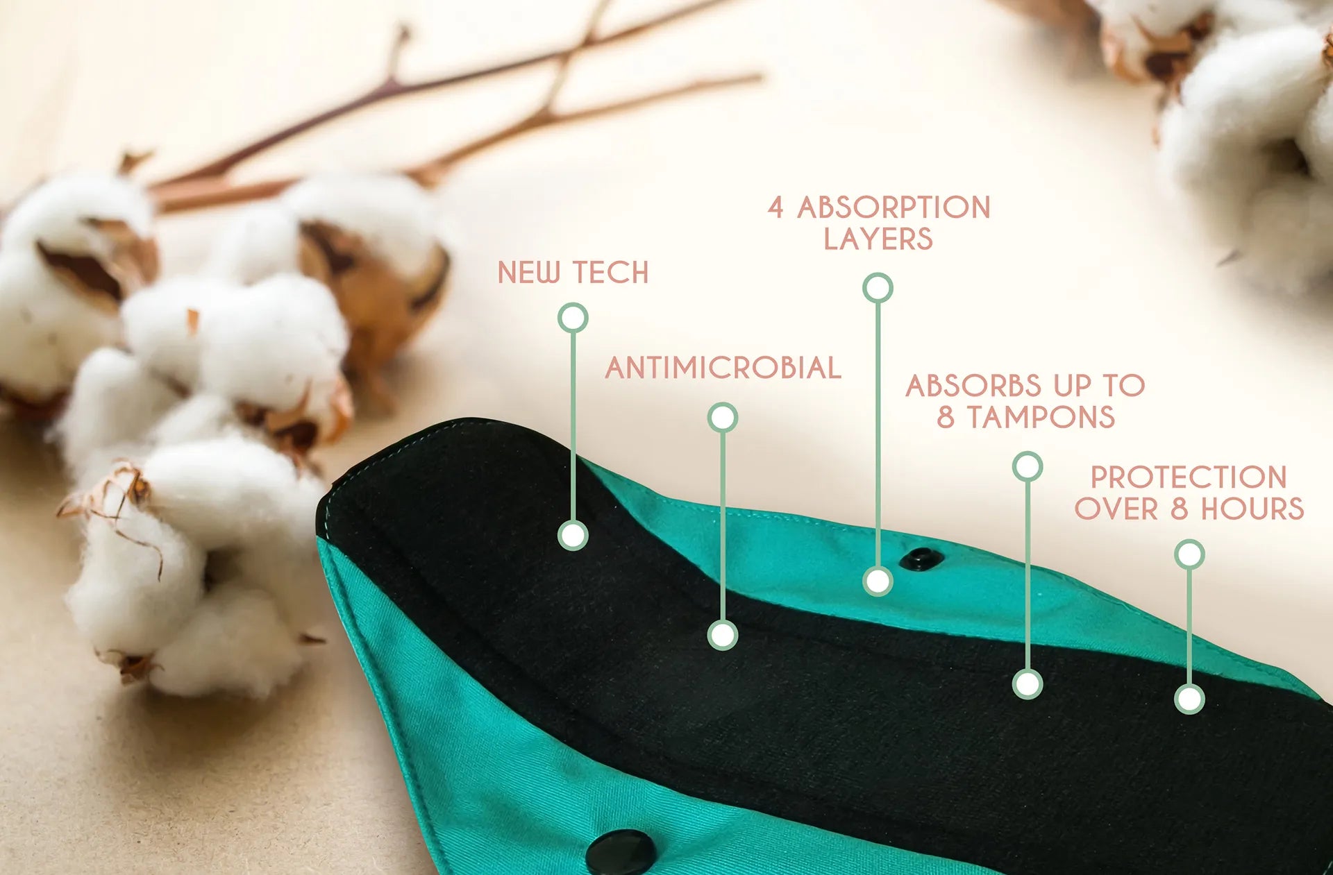 🔬 Tested and certified: Femi.Eko® reusable pads have been tested for antibacterial effectiveness and have been shown to be effective against Staphylococcus aureus, Escherichia coli and Candida Albicans, even after 50 washes.