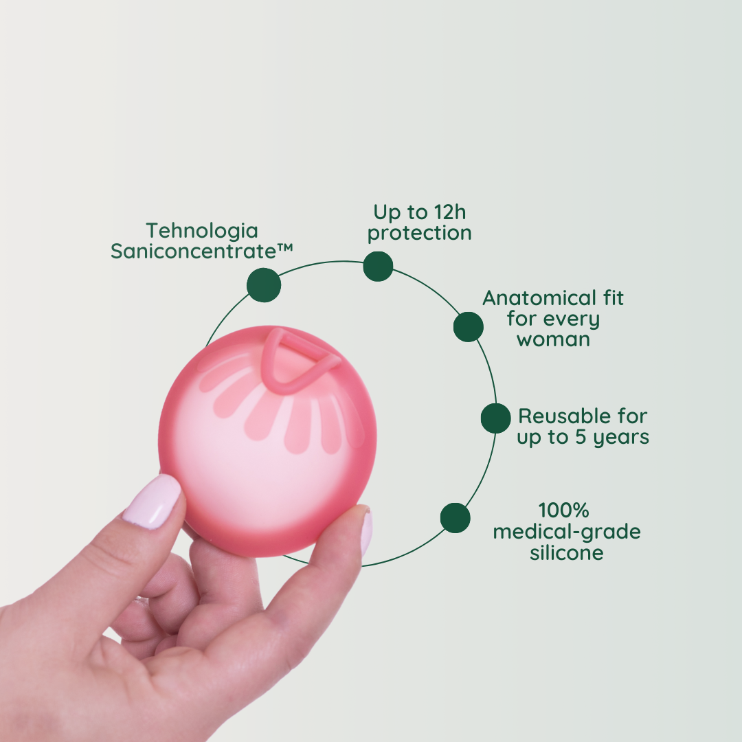 • Femi.Eko® menstruationsdisken med Saniconcentrate-teknologi – sikker i vand og til afslappende aktiviteter.