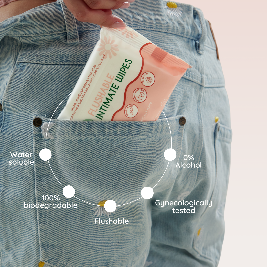 • Én pakke biologisk nedbrydelige intime vådservietter – praktiske til hurtig friskhed.