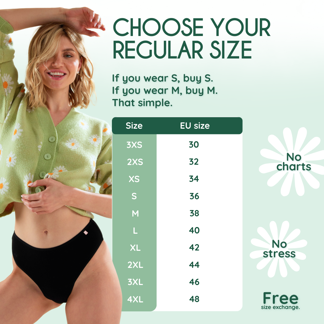 Vælg den størrelse, der passer bedst til din menstruationsdag, for optimal komfort og beskyttelse.
